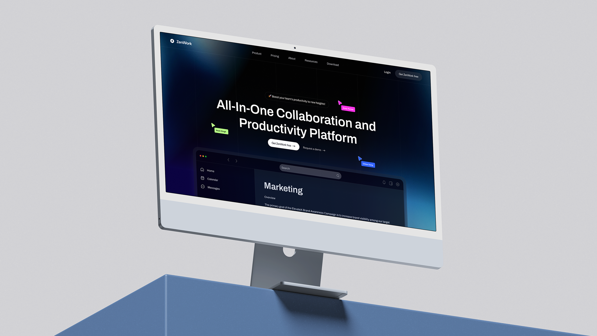 Landing page designed for an all-in-one SaaS collaboration platform.